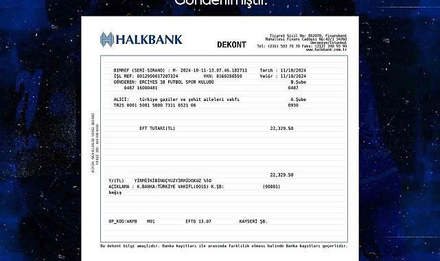 Erciyes 38 Futbol Kulübü, Denizlispor maçının hasılatını Türkiye Gaziler ve Şehit Aileleri Vakfı'na bağışladı.Türkiye 3. Lig 4. Grupta bulunan Erciyes 38 Futbol Kulübü, iki hafta önce sahasında oynadığı Denizlispor maçının gelirini Şehit Aileleri Derneği'ne bağışladı. Kulüp sosyal medya hesaplarından yapılan açıklamada; Erciyes 38 Futbol Kulübü'nden Türkiye Gaziler ve Şehit Aileleri Vakfı hesabına 29 bin 329 Türk Lirası 50 kuruş gönderildiği bildirildi.Mavi siyahlı kulübün bu davranışı takdir topladı.