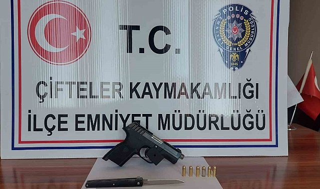 Eskişehir'in Çifteler ilçesinde meydana gelen silahla yaralama olayına dair çalışma başlatan polis, olayın failini, suç aletleriyle birlikte yakaladı.Edinilen bilgiye göre, Çifteler İlçe Emniyet Müdürlüğü ekiplerince ilçedeki pazar yeri alanında meydana gelen ateşli silahla kasten yaralama olayına ilişkin çalışma başlattı. Ekiplerin detaylı çalışması sonucunda M.K. simli şahıs yaralayan İ.B.Ç. isimli şahıs yakalandı. Ekiplerce İ.B.Ç.'nin olayda kullandığı 1 ruhsatsız tabanca, 6 adet fişek ve 1 bıçak ele geçirildi. İ.B.Ç. isimli şahıs işlemlerinin ardından sevk edildiği mahkemece tutuklanarak cezaevine gönderildi.