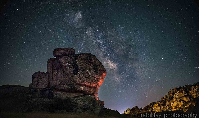 Eskişehir'de astrofotoğrafçılık yapan Murat Oktay, Sivrihisar ilçesine bağlı Kaymaz Mahallesi'nde uzun pozlama tekniği ile samanyolu çekimi yaptı.Eskişehir'de 4 yıldır hobi olarak yaptığı astrofotoğrafçılık ile kentin doğal güzelliklerinde ve tarihi noktalarında gece çekimleri yaparak samanyolu fotoğrafları ve timelepse yani zaman atlamalı fotoğrafçılık çekimleri yapan Murat Oktay, Sivrihisar ilçesine bağlı Kaymaz Mahallesi, Karakaya Tırmanış Bahçesi'nde uzun pozlama tekniği ile samanyolu çekimi yaptı. Çektiği 601 fotoğrafı, uzun pozlama tekniği kullanılarak oluşturduğu timelepse çekiminden yansıyan bu fotoğraf ile bölgenin doğal güzelliğini gözler önüne serdi."5 saat ve üzeri uzun pozlanmış çekimler yapıyorum"Çekimi 5 saat sürede bitirdiğini aktaran Oktay, "Çekimlerimi Mayıs-Ekim ayları arasında yapabiliyorum. Bu aylar arasında samanyolu galaktik merkezini görebiliyoruz yani daha net ifade etmem gerekirse hava durumu müsaade ederse, her ayın yeni ay zamanlarında samanyolunu ve galaktik merkezini fotoğraflayabiliyorum. Şehirden uzak noktaları tercih ediyorum, ışık kirliliğinin mümkün oldukça az olduğu bölgeler samanyolu çekimleri için elverişli noktalar oluyor, genelde 5 saat ve üzeri uzun pozlanmış çekimler yapıyorum ve bunun için bölgede kamp kuruyorum ve gece boyunca çekimlerime devam edebiliyorum. Bundan dolayı, Karakaya Tırmanış Bahçesi hem doğal yapısı hem de ışık kirliliği açısından elverişli olması, samanyolu çekimleri için çok ideal ve büyüleyici bir konum haline geliyor" dedi.
