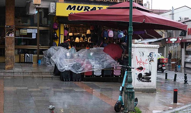 Kentte gece saatlerinde başlayan yağmur yağışının etkisi devam ediyor. Yağmurdan ürünlerini korumak isteyen esnaf, sattığı ürünlerinin üzerine naylon branda örterek tedbir almaya çalıştı. Yağışın esnafı vurmasının yanı sıra şehirdeki vatandaşların da yağmurdan korunmak için şemsiye kullandıkları görüldü. Şemsiyesi olmayan vatandaşlar, yağmurdan korunmak için bina altlarına ve çevresindeki dükkan tentelerinin altına sığındı.