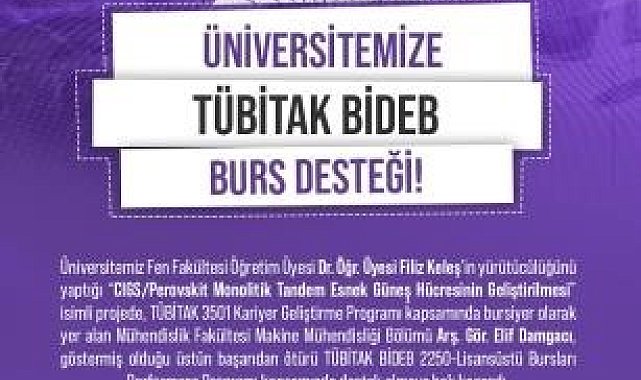 Niğde Ömer Halisdemir Üniversitesi Fen Fakültesi Öğretim Üyesi Dr. Öğr. Üyesi Filiz Keleş'in yürütücülüğünü yaptığı "CIGS/Perovskit Monolitik Tandem Esnek Güneş Hücresinin Geliştirilmesi" isimli proje destek almaya hak kazandı.TÜBİTAK 3501 Kariyer Geliştirme Programı bursiyeri Mühendislik Fakültesi Makine Mühendisliği Bölümü Arş. Gör. Elif Damgacı, göstermiş olduğu üstün başarıdan ötürü TÜBİTAK BİDEB 2250-Lisansüstü Bursları Performans Programı kapsamında destek almaya hak kazandı. Ayrıca projede araştırmacı olarak devam etmesi öngörülen öğretim elemanı, proje ekibi ile birlikte tandem yapı elde edilmesi ve geliştirilmesi üzerine çalışmalar yürütecek.Projede yüksek verim potansiyellerinden dolayı son zamanlarda oldukça popüler olan CIGS ve perovskit güneş hücre üretiminin yanı sıra, bu iki hücrenin birlikte kullanımı ile birlikte tandem yapı elde edilmesinin hedeflendiğini belirten proje yürütücüsü Öğretim Üyesi Dr. Öğr. Üyesi Filiz Keleş, "Bununla birlikte optoelektronik olarak oldukça avantajlı olan nano çubukların da yapıya dâhil edilmesi söz konusudur" diye konuştu.Projenin bir çıktısı olarak ulusal ve uluslararası patent başvurusunun bulunduğunu ifade eden Keleş, "Ayrıca projede öngörüldüğü üzere CIGS nano çubuk/perovsksit tandem yapı üretimi hem ülkemizde hem de uluslararası düzeyde bir ilk olacak" dedi.Rektör Uslu'dan proje ekibine tebrikKonuyla ilgili açıklama Rektör Prof. Dr. Hasan Uslu, yerli güneş hücresi üretiminde önemli çalışmalar gerçekleştirilen üniversitelerinin bu konuda Türkiye'nin öncü yükseköğretim kurumu olduğunu belirtti. Rektör Uslu, ulusal ve uluslararası düzeyde bir ilk olacak hedeflere sahip projelerinden dolayı Öğretim Üyesi Dr. Öğr. Üyesi Filiz Keleş ile burs almaya hak kazanan Arş. Gör. Elif Damgacı'yı tebrik ederek, başarılarının devamını diledi.