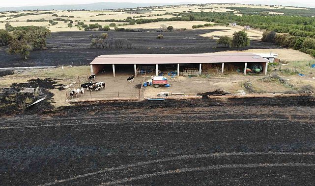 Çanakkale'nin Ezine ilçesine bağlı Kızılköy köyü yakınlarında çıkan orman yangını, havadan ve karadan yapılan müdahale sonucu kontrol altına alındı. Yangında çiftçi Mustafa Girgin, ağılının dibine kadar gelen alevlerden hayvanlarını son anda kurtardı. Yanan alanlar dron ile havadan görüntülendi.Ezine ilçesine bağlı Kızılköy köyü civarında saat 16.15 sıralarında orman yangını çıktı. Yangına Orman Bölge Müdürlüğü ekipler saat 16.20'de ilk müdahaleyi yaptı. Bölgeye havadan ve karadan çok sayıda ekip sevk edildi. Yangına 3 uçak, 3 helikopter, 9 hizmet aracı, 1 treyler, 3 itfaiye aracı, 2 ilk müdahale aracı, 13 arazöz, 6 su ikmal aracı, 1 dozer ve toplam 345 personelle müdahale edildi. Yapılan hummalı çalışmalar sonrasında yangın saat 18.30 itibari ile kontrol altına alındı. Bölgede soğutma çalışmaları devam ediyor.Çanakkale Orman Bölge Müdürlüğünden yangına ilişkin yapılan açıklamada, "13 Haziran 2024 tarihinde saat 16.13'de Çanakkale 112 AÇM'den bildirilen Ezine Kızılköy Köyü civarında orman alanından duman yükseldiği ihbarı üzerine ekiplerimiz derhal yangın mahalline sevk edilmiştir. İlk müdahale yangın başlangıcından 7 dakika sonra saat 16.20'de yer ekiplerimizce yapılmıştır. Yangının rüzgarın etkisi ile hızla yayılma eğilimi göstermesi ve ekili ziraat alanlarından orman alanına sirayet etmesi nedeniyle ekiplerimize destek amacı ile derhal Çanakkale'de konuşlu uçaklarımız ve yangın söndürme ve yönetim helikopterleri yangın mahalline hareket ettirilmiştir. Yangını kontrol altına alma ve söndürme çalışmalarımız ekiplerimizin yoğun ve koordineli müdahalesi ile saat 18.30 itibariyle tamamlanmış olup, soğutma çalışmaları devam etmektedir" denildi.Yangında ağılının dibine kadar gelen alevlerden çiftçi Mustafa Girgin, büyük ve küçükbaş hayvanlarını son anda kurtardı.Çiftçi Mustafa Girgin, "Köye gittim. Bana telefon geldi. Senin çiftliğin yakınında yangın var dediler. Sonra geldim hayvanlarımı kurtardım. Ben mallarımı kurtarmaya çalıştım. Hayvanlarımı kurtardım. 17 büyükbaş ve 20 tane koyunum var. Onları son anda kurtardım" dedi.Yanan alanlar dron ile havadan görüntülendi.