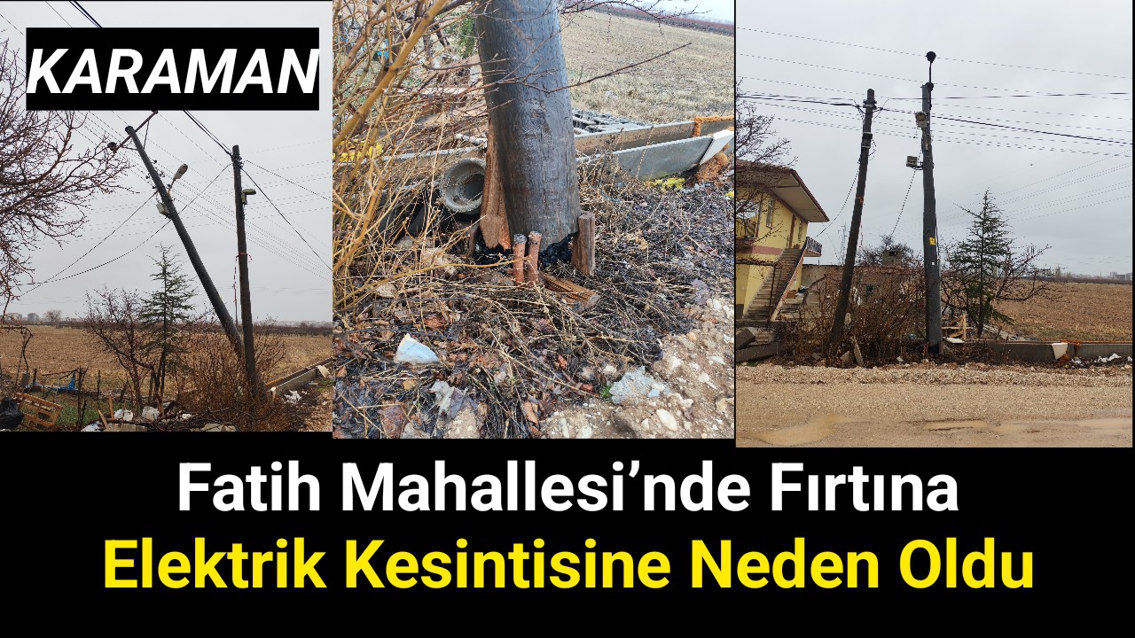 Fatih Mahallesi’nde fırtına Elektrik Kesintisine Neden OlduFatih Mahallesi’nde, İğdemit su kuyuları ve terfi istasyonunun bulunduğu bölgede şiddetli rüzgar nedeniyle bazı elektrik direkleri devrildi. Yaşanan olay sonrası mahallede elektrik kesintisi meydana geldi.