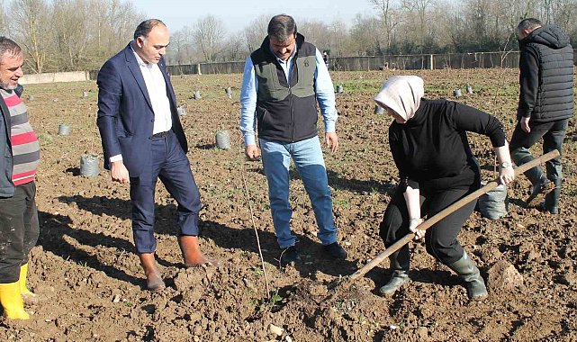DÜZCE(İHA) – Düzce'nin ana ürünü olan fındıkta birim alandan alınan verimi arttırmak ve fındıkta kaliteyi artırmak için Düzce Üniversitesi Fındık Uygulama ve Araştırma Merkezince (DÜFAM) hazırlanan fındık projesi ile Ticaret Borsasına ait 6 dekar alana örnek bahçe kuruluyor.Kurulacak örnek fındık bahçesinde gerçekleşen fındık fidanı dikimine Tarım ve Orman İl Müdürü Esra Uzun, Düzce Üniversitesi Orman Fakültesi DÜFAM Müdürü Doç. Dr. Şemsettin Kulaç, Ticaret Borsası Genel Sekreteri Dursun Kara ve fındık üreticisi Özcan Baylan katıldı.Sürdürülebilir tarım teknikleri ile bölgenin kalkınmasını desteklemek, fındık tarımında yeni ve modern tekniklerin arazide uygulanabilirliğini arttırmak amacıyla oluşturulan örnek fındık bahçesinde Tarım Müdürü Esra Uzun'a proje hakkında bilgi verenŞemsettin Kulaç "Projelendirilen çalışmada alanda sarı çakıldak ve Yomralı çeşidi kullanılıyor. Bahçe aşılı ağaç kullanılarak Ocak ve tek dal sistemi ile kuruluyor" dedi.Esra Uzun yapılan bu çalışmanın fındık tarımındaki yetiştiricilik sorunları, üreticilerin yapmış olduğu yanlış uygulamaları en aza indirme ve bölgede yapılacak olan fındık yenileme ve rehabilitasyon çalışmaları için örnek teşkil etmesini temenni etti.