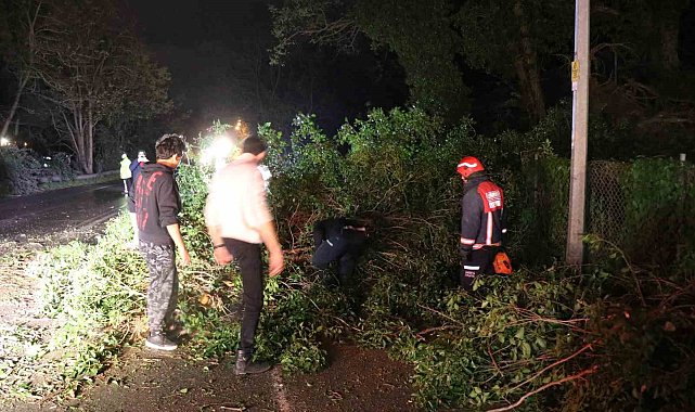 Sakarya'da etkili olan şiddetli fırtına Sapanca ilçesini adeta yıktı geçti. Fırtına sebebiyle bir ağaç ana yola devrilirken bir dükkanın ise tabelası koptu. Rüzgarda birbirine sürten elektrik tellerinden çıkan kıvılcım ise saniye saniye görüntülendi.Meteoroloji Genel Müdürlüğünün uyarıları sonrasında Sakarya'da fırtına etkili oldu. Sapanca ilçesinde etkisini gösteren fırtına zarara sebep oldu. Göl Mahallesi Sakarya Caddesi üzerinde yol kenarında bulunan bir ağaç ana yola devrildi. Devrilen ağaç sebebiyle Sapanca-Adapazarı yolunun tek yönü yaklaşık yarım saat ulaşıma kapandı. Bu esnada yoldan geçen bir motosikletli ise ağacın parçalarının vücuduna isabet etmesi neticesinde hafif yaralandı. Durumun haber verilmesi üzerine bölgeye itfaiye ve polis ekipleri sevk edildi. Devrilen ağaç, itfaiye ekiplerince yapılan çalışma neticesinde yoldan kaldırılırken, polis ekipleri ise ulaşımı tek yönlü olarak sağladı.Çöp kovaları devrildi, dükkanın tabelası koptuÖte yandan, ilçe genelindeki birçok çöp kovası şiddetli rüzgarın etkisi ile devrildi. Göl Mahallesi Fevzi Çakmak Caddesi üzerinde bulunan bir kuruyemiş dükkanının şiddetli rüzgara dayanamayan tabelası yerinden koparak parçalandı. Aynı bölgede birbirine sürten elektrik tellerinden çıkan kıvılcımlar ise cep telefonu kamerası ile saniye saniye görüntülendi. Ekipler, yaşanan ve yaşanabilecek olumsuzluklara karşı çalışmalarını sürdürüyor.