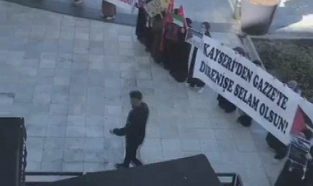 Kayseri'de bir grup öğrenci, ellerinde dövizlerle Forum Kayseri'de bulunan Starbucks isimli kafe önünde İsrail'i protesto etti.Forum Kayseri AVM önünde toplanan öğrenciler, İsrail saldırısı altında bulunan Filistin'e destek verirken ellerinde bulunan 'Kayseri'den Gazze'ye direnişe selam olsun' ve 'Siyonizm ölümdür, zulümdür, kandır. Bekle çocuğum seni diriltecek İslam'dır' yazılı dövizlerle İsrail'i protesto etti.Yaşlı, kadın, çocuk demeden 7 Ekim'den bu yana saldırılarına devam eden İsrail'e sloganlarla tepki gösteren grup, bir süre sonra olaysız şekilde dağıldı.