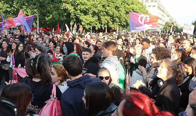 Fransa'da Avrupa Parlamentosu seçimlerinde aşırı sağcı Ulusal Birlik (RN) tarafından seçimlerde elde edilen ezici üstünlüğün ardından aşırı sağın yükselişini yönelik protestolar devam ediyor.Fransa'da Avrupa Parlamentosu seçimlerinde aşırı sağcı Ulusal Birlik (RN) partisinin oyların yüzde 31,5'ini alarak ilk sıraya yerleşmesine yönelik protestolar devam ediyor. Sol görüşlü Fransızlar, aşırı sağın yükselişini başkent Paris'teki Cumhuriyet Meydanı'nda 3'üncü günde de protesto ederek, siyasi faşizmi reddettiklerini belirten sloganlar attı.Polisle karşı karşıya gelen göstericiler, Fransız halkını uyanmaya çağırarak, ellerinde "Hayır" yazılı pankartlar taşıdı. Faşizme karşı durduklarını belirten göstericiler, Fransa'nın faşizmle yönetilemeyeceğini vurguladılar.Göstericiler, Fransa'da 30 Haziran'da düzenlenecek olan yerel seçimlerde aşırı sağın zaferini engellemesi için çağrıda bulundu.Macron meclisi feshetmiştiFransa'da aşırı sağcı Ulusal Birlik (RN) tarafından seçimlerde elde edilen ezici üstünlük, Fransa Cumhurbaşkanı Emmanuel Macron'un Ulusal Meclis'i feshetme ve erken seçime gitme kararı almasına neden olmuştu. Avrupa Parlamentosu seçimlerinde Macron'un partisi Rönesans ise oyların yüzde 15,2'sini alarak RN'nin ardından ikinci sırada yer almıştı.