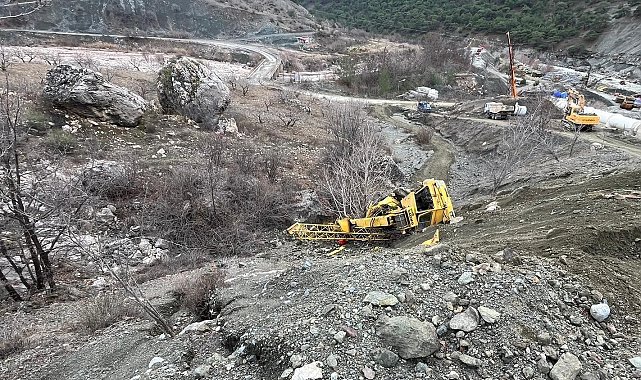 İrfan T. yönetimindeki vinç kontrolden çıkarak şarampole devrildi. İhbar üzerine olay yerine gelen sağlık ve jandarma ekipleri vinç altında kalan İrfan T.'yi kurtardı.