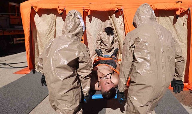 Gaziantep'te kimyasal, biyolojik, radyolojik ve nükleer (KBRN) tehditlere karşı hazırlık ve müdahale kapasitesini güçlendirmeyi amaçlayan tatbikat yapıldı. Ekipler, senaryo gereği yaşanan kimyasal saldırıda yaralananlara en hızlı ve etkin şekilde müdahale etti.İl Sağlık Müdürlüğü ve Gaziantep Ulusal Medikal Kurtarma ekibi (UMKE) ev sahipliğinde kimyasal, biyolojik, radyolojik ve nükleer tehditlere karşı tatbikat gerçekleştirildi. Şehitkamil ilçesinde bulunan Erikçe Ormanı'nda düzenlenen tatbikata 112 Acil Sağlık, itfaiye, jandarma, hava kuvvetleri komutanlığı ve AFAD ekibi de destek verdi. Ekipler, senaryo gereği yaşanan kimyasal saldırıda yaralananlara en hızlı ve etkin şekilde müdahale etti.Tatbikat alanında kurulan sahra hastanesinde özel kıyafetli ekiplerce ilk müdahalesi yapılan yaralılar, ardından ambulanslarla hastaneye nakledildi.