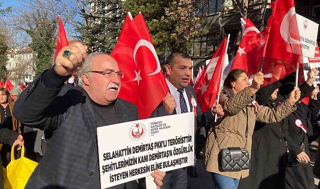 Ankara'da gazi ve şehit yakınları, Halkların Eşitlik ve Demokrasi Partisi (DEM Parti) önünde eylem yaptı.Şehit ve gazi yakınları DEM Parti önünde eylem yaptı. Terörü kınayan tezahüratların yapıldığı eylemde, DEM Parti'nin bölücü terör örgütü PKK ile ilişkisine vurgu yapıldı. Türkiye Gaziler ve Şehit Aileleri Vakfı Başkanı Lokman Aylar, yaptığı konuşmada geçtiğimiz günlerde Kuzey Irak'ta şehit düşen 12 kişinin kanında DEM Parti'nin olduğunu söyledi. Türkiye'nin şehit haberleri ile sarsıldığını ve herkesin yüreklerinin yandığını belirten Aylar, "Terör sevicisi Batı'nın çocukları hem bu millete hem bu vatana ihanet ediyor, aziz şehitlerimizin kemiklerini sızlatmaya devam ediyor" diye konuştu.Söz konusu partinin sürekli isim değiştirdiğini ve teröre kılıf oluşturduğunu söyleyen Aylar, "Tek amacı terör seviciliği yapmak, dağdaki hainlere kol kanat germek olan DEM Parti; bu milletin değerlerine, birliğine ve bütünlüğüne kastetmeye devam ediyor. Farklı zamanlarda farklı isimlerle karşımıza çıksa da alçaklığını, hainliğini ve kirli emellerini hiçbir zaman gizleyemeyecektir" ifadelerini kullandı.DEM Parti'nin Batı tarafından yönetildiğini belirten Aylar, "Kime ve neye hizmet ettiği belli olan, salyasını milletimizin üzerine bulaştırmak isteyenler bilsinler ki bu millet sizin havlamalarınızı susturacak, hak ettiğiniz karşılığı size bildirecektir" dedi.DEM Parti Eş Başkanı Tuncer Bakırhan'ın bölücü terör örgütü PKK'ya destek verdiğine dikkati çeken Aylar, şunları kaydetti:Tuncer Bakırhan denen hain, bebek katili İmralı canisine özgürlük isterken 'Kürt sorunu devam ettikçe Tekirdağ, Trabzonlu da rahat edemeyecek' diye bizleri tehdit etmeyi ihmal etmemiştir."DEM Parti'nin Türkiye'de vatandaşları ayrıştırdığını söyleyen Aylar, vatandaşların bu hainlere karşı birlik ve beraberlik içinde olduğunu aktardı. Türkiye'nin birliği ve dirliğinin bozulmayacağını belirten Aylar, "Türk milletinin sahip olduğu bu yüce ruh var olduğu müddetçe, milli birlik ve bütünlüğümüze kast edenlerin kirli emelleri asla ve asla gerçekleşmeyecektir" diye konuştu.Eyleme katılan Kıbrıs gazisi Osman Kaplan, DEM Parti'nin teröre destek verdiğini ifade ederek, "Onlar kahrolsun ve yok olsun. Biz her zaman devletimizin ve vatanımızın yanındayız, Mehmetçiğin arkasındayız. Kiminin evladı, torunu ve kardeşi şehit. Ben Kıbrıs gazisiyim. İçeride saklanmış ve gizlenmişler" dedi.Şehit ve gazi yakınları protesto gösterisinde "Selahattin Demirtaş teröristtir", "Vatana kurşun sıkanın sonu sarı torba" yazılı pankartlar açtı.