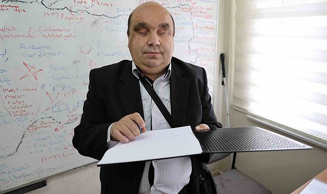 Sivas'ta görme engellilerin hayatını kolaylaştırmak için açılan Braille kabartma yazı kursu görme engelliler kadar görenlerden de yoğun ilgi görüyor.Sivas Belediyesi Engelliler Kültür Merkezinde Sivas Belediyesi ve Halk Eğitim Merkezi Müdürlüğü tarafından ortaklaşa açılan Braille alfabesi kabartma yazı kursu engeli bulunan ve bulunmayan vatandaşlar tarafından yoğun ilgi görüyor. Bu kursa gelen görme engelliler Braille alfabesi diye adlandırılan kabartma yazıyı öğrenerek hayatlarını bir adım daha kolaylaştırmak için çabalarken görme engeli bulunmayan vatandaşlar ise görme engellilere ışık olmak için bu kursu tercih ediyor."Engeli olmayan kişilere de kabartma yazı kursu vermeye başladık"Doğuştan görme engelli Tarih öğretmeni ve Braille alfabesi öğreticisi Selman Devecioğlu, birçok kişinin kursa ilgi gösterdiğini ifade ederek, "Öncelikle 2014 yılında Sivas'a atandım. İlk geldiğim zamanlarda görme engellilere kabartma yazı kursu verdik. Daha sonra bu kursu görenlere vermeye başladık. Engeli olmayan kişilere de kabartma yazı kursu vermeye başladık. Braille yazı görme engellilerin kabartma yazısıdır. Sivri kalem ve tablet dediğimiz eşyalarla yazılır. Engelli olmayanlara kursu verirken bir yandan da görme ve de diğer engellilere nasıl davranırız, engelli nedir, bizim dünyamız ile onların dünyası arasında perdeyi kaldırmaya çalışıyoruz. Braille kursunda, din görevlilerine Arapça alfabe öğretiyoruz. Engeli olmayan, din görevlilerimize görme engellilere Kuran-ı Kerim okutabilmeleri için Arap alfabesi ile Braille alfabe öğretiyoruz. Sosyal hizmet bölümü öğrencileri, üniversitelerimizden ve vatandaşlardan görme engellilerin kabartma yazısını öğrenmek isteyenler gelip kurs alıyorlar" dedi."Engeli olmayan insanlarında öğrenmesi lazım"Yüzde 90 görme engelli Hüsamettin Duman, engeli olamayan insanlarında bu alfabeyi öğrenmesi gerektiğini söyleyerek, "Braille yazı kursuna katılma sebebim. Günlük yaşantımızda birçok ürünün fiyatını göremediğimiz için bütün ürünlerin üzerinde olmasa da birçok ürünün üzerinde kabartma yazısı var. Bu sayede ilaçların isimlerini, ilacın kullanım şeklini anlayabiliyoruz. Engeli olmayan insanlarında öğrenmesi lazım. Kendini ifade edemeyen görme engelliler bu yazıyla dertleşebilir" diye konuştu."Engellilere ışık olmak adına bu kursa katılmaya karar verdim"Bir engeli bulunmayan İlknur İçen, engellilere ışık olmak adına bu kursa geldiğini ifade ederek, "Şuanda bir engel durumum yok. Ama engellilere ışık olmak adına ben bu kursa katılmaya karar verdim. Bir görme engellinin ışığı olmak istiyorum. Gören bir insan ile göremeyen bir insanın dünyasını aslında açmış olacağım. Mesela rehabilitasyon merkezine görme engelli bir öğrenci geldiği zaman ona nasıl yardımcı olur diyerek bu kursa geldim. Hayalimde bir öğrenciye ışık olmak. Umarım diğer insanlara da örnek olmuşumdur" şeklinde konuştu.