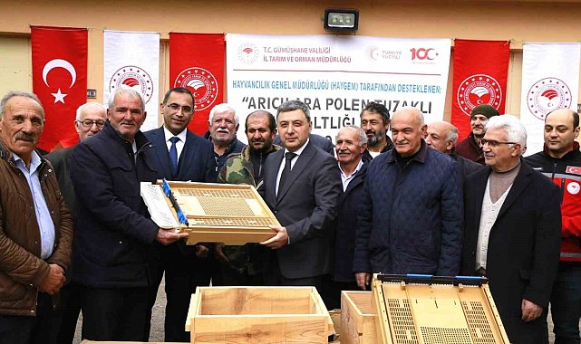 Gümüşhane'de 122 arıcıya 'Polen Tuzaklı Kovan Altlığı Desteği Projesi' kapsamında bin 320 adet kovan altlığı dağıtıldı.Gümüşhane'de, İl Tarım ve Orman Müdürlüğü ve Gümüşhane Arı Yetiştiriciliği Birliği tarafından ve Hayvancılık Genel Müdürlüğü (HEYGEM) tarafından da desteklenen 'Polen Tuzaklı Kovan Altlığı Desteği Projesi' kapsamında Gümüşhane Valisi Alper Tanrısever'in de katılımıyla kovan altlığı dağıtımı gerçekleştirildi.Sahip olduğu fauna ile çok zengin bir bitki örtüsüne sahip Gümüşhane'de çerçeve sayısının, kuluçka alanının, bal veriminin ve polen üretiminin artırılmasının hedeflendiği projeden 122 arıcı yararlandı.Yüzde 70'i bakanlık, yüzde 30'u da çiftçi katkısıyla yürütülen 'Polen Tuzaklı Kovan Altlığı Desteği Projesi' kapsamında kent merkezinde yetiştiricilik yapan 77 arıcıya 751, Kelkit ilçesinde 21 arıcıya 312, Torul ilçesinde 13 arıcıya 119, Köse ilçesinde 5 arıcıya 54, Şiran ilçesinde 4 arıcıya 48 ve Kürtün ilçesinde 2 arıcıya 36 olmak üzere toplamda 1320 adet kovan altlığı dağıtıldı.