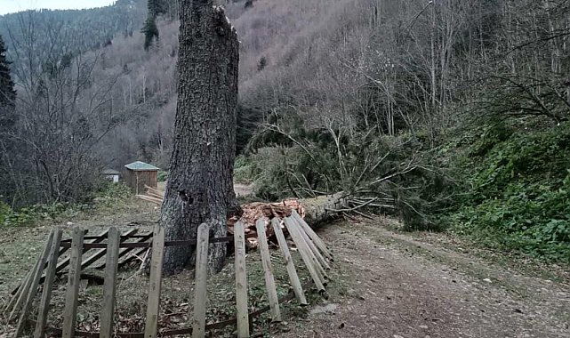 Gümüşhane'nin Kürtün ilçesi sınırlarında, doğanın eşsiz güzelliklerinden biri olarak kabul edilen Örümcek Ormanları Tabiatı Koruma alanında, yüzyıllardır ayakta duran anıt ağaç şiddetli fırtınanın etkisiyle devrildi.Gümüşhane'nin doğal güzellikleri arasında önemli bir yere sahip olan Kürtün ilçesi sınırlarındaki Örümcek Ormanları'nda yüzyıllardır ayakta duran anıt ağaç şiddetli rüzgarın etkisiyle fırtınaya direnemeyerek yıkıldı.Türkiye'nin en önemli karışık ormanlarından birisi olmasının yanı sıra içerisindeki yüzlerce yıllık ağaçların göğe uzandığı canlı ağaç müzesi Örümcek Ormanları Tabiatı Koruma alanında Avrupa ve Kafkaslar'ın en boylu ve çaplı ladin ve göknarları yer alıyor.Anıt ağaçlardan birisi olan yaklaşık 450 yıl yaşındaki Göknar ağacı bölgede etkili olan fırtınaya daha fazla dayanamayarak kırıldı. Son yıllarda kuruma emaresi gösteren ve dip tarafı çıra olarak kullanılmak üzere çok eski zamanlarda koparılan ağaç rüzgarın şiddetiyle yıkıldı.Özellikle sonbahar aylarında ağaçların renk değişimi ve doğanın tüm tonlarının bir arada olduğu büyülü bir manzaraya dönüşen ve vatandaşların yoğun ilgi gösterdiği alanda kimsenin olmaması olası faciayı da önledi.Şiddetli rüzgarın Kürtün'ün yüksek zirvelerindeki yaylalarda bulunan evlerin çatılarını da uçurduğu öğrenilirken, ilgili kurumların devrilen anıt ağaçla ilgili işlem yapması ve ağacı yıkıldığı yerden kaldırmaları bekleniyor.