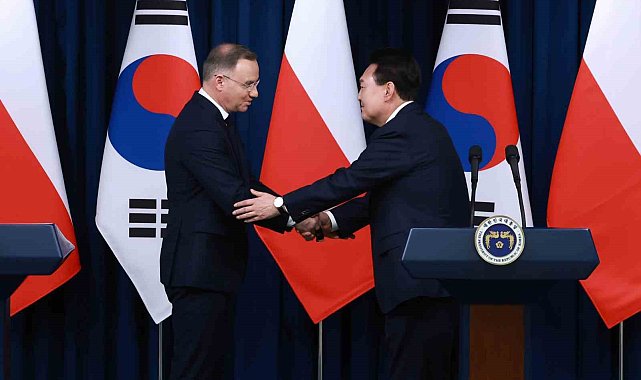 Güney Kore Devlet Başkanı Yoon Suk Yeol, Polonya Devlet Başkanı Andrzej Duda ile gerçekleştirdiği basın toplantısında, "Kuzey Kore'nin Rusya'ya asker göndermesinin BM Güvenlik Konseyi kararlarının ve BM Tüzüğü'nün doğrudan ihlali olduğu ve Kore Yarımadası ve Avrupa'nın ötesine geçerek küresel güvenliği tehdit eden bir provokasyon olduğu konusunda mutabık kaldık" dedi.Polonya Devlet Başkanı Andrzej Duda, Güney Kore'ye 4 günlük resmi ziyaret gerçekleştirdi. Duda, temasları çerçevesinde başkent Seul'de Güney Kore Devlet Başkanı Yoon Suk Yeol ile görüştü. Görüşmenin ardından ortak basın toplantısı düzenleyen Yeol ve Duda, Güney Kore'nin K2 tanklarının yıl sonuna kadar Polonya'ya ihracatı için yeni bir sözleşme imzalanması konusunda anlaştı.Duda ve Yeol'den Kuzey Kore'ye kınamaDuda ve Yeol, basın açıklaması sırasında Kuzey Kore'nin Rusya'ya asker göndermesini kınadıklarını ifade etti. Yeol, "Kuzey Kore'nin Rusya'ya asker göndermesinin BM Güvenlik Konseyi kararlarının ve BM Tüzüğü'nün doğrudan ihlali olduğu ve Kore Yarımadası ve Avrupa'nın ötesine geçerek küresel güvenliği tehdit eden bir provokasyon olduğu konusunda mutabık kaldık" dedi.İki ülke arasında işbirliğiGüney Kore Devlet Başkanı Yeol, Güney Kore ve Polonya'nın özgürlük, insan hakları ve hukukun üstünlüğü gibi evrensel değerleri paylaşan ortaklar olduğunu ve Seul'un savunmanın yanı sıra çeşitli alanlarda işbirliğini derinleştirmek istediğini söyledi. Ülkesinin Ukrayna'nın savaş sonrası dönemde yeniden inşasında Polonya ile işbirliği yapmaya devam edeceğini sözlerine ekleyen Güney Kore lideri ayrıca, Güney Kore ve Polonya'nın savunma diyaloğu için yeni bir forum kuracaklarını ve iki ülkeyi etkileyen güvenlik konularında yakın işbirliği yapacaklarını belirtti.