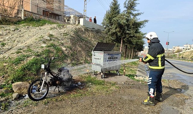Hatay'ın Belen ilçesinde yanan motosiklet itfaiye ekipleri tarafından söndürüldü.Belen ilçesi Sarımazı Mahallesi'nde seyir haldeki motosiklet yandı. Motosiklette dumanların çıktığını gören sürücü, yolun kenarında durarak alandan uzaklaşıp 112'yi aradı. İhbar üzerine itfaiye ekipleri olay yerine sevk edildi. İtfaiye ekiplerinin müdahalesi sonucunda yangın kısa sürede söndürüldü. Çıkan yangından dolayı motosiklette maddi hasar oluştu.