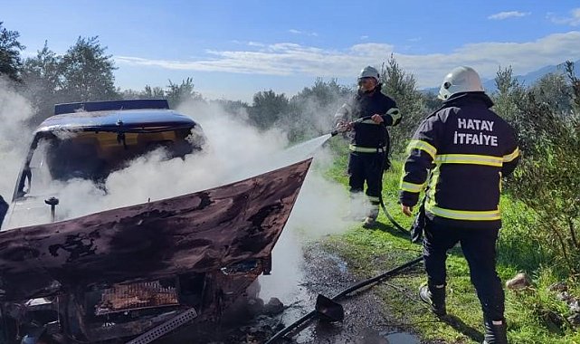 Hatay'da otomobilde yangın çıktı