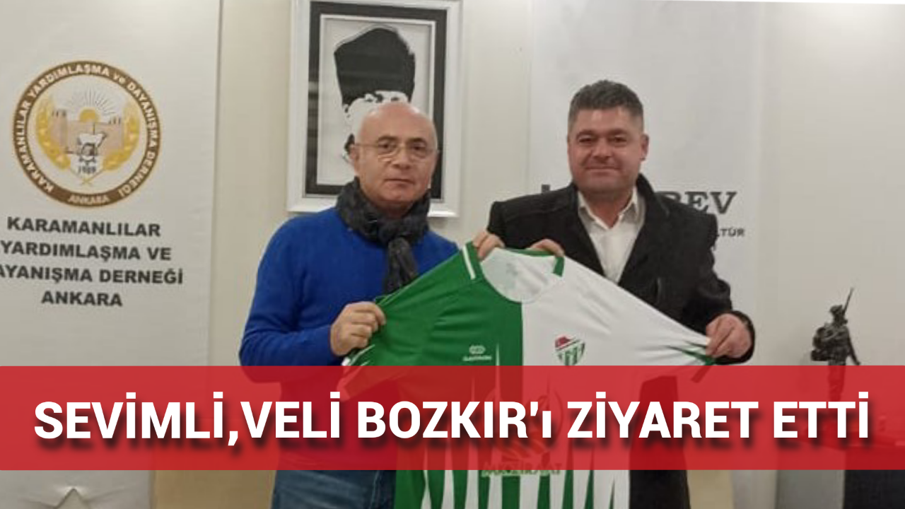 Karaman ve Sudurağı'ın sevilen işadamlarından Sudurağı Gençlerbirliği Futbol kulübü askanı Ahmet Sevimli ankara ziyaretlerinde Karamanlılar Yardımlaşma ve Dayanışma Derneği başkanı Veli Bozkır'ıda ziyaret etti. Ziyaretle ilgili yapılan açıklamada;"Başkanımızın Ankara ziyaretleri kapsamında, Karamanlılar Yardımlaşma ve Dayanışma Derneği Başkanı ve aynı zamanda eski milli hakemimiz Veli Bozkır’ı dernek binasında ziyaret etti. Sporun ve dayanışmanın ruhunu yaşatan bu güzel buluşma için Veli Bozkır’a teşekkür ediyor, çalışmalarında başarılar diliyoruz!" denildi.