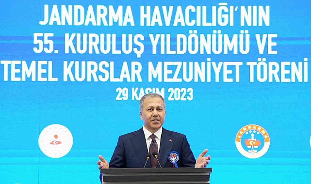 İçişleri Bakanı Ali Yerlikaya, Jandarma Genel Komutanlığının 12 ilde hava araçlarıyla hizmet vermeye başladığını söyledi.İçişleri Bakanı Ali Yerlikaya, Şehit Orgeneral Eşref Bitlis Kışlası'nda, 'Jandarma Havacılık Okul Komutanlığı 2023 Yılı Temel Kurslar Mezuniyet Töreni'ne katıldı. Törende konuşan Bakan Yerlikaya, "Bugün, Jandarma Havacılık Başkanlığımız bünyesinde kurslarını tamamlayan 20 pilotumuz, 22 İnsansız Hava Aracı (İHA) pilotumuz, 51 teknisyenimiz ve 41 İHA teknisyenimiz olmak üzere toplam 134 subay ve astsubayımızın mezuniyet sevincini hep birlikte yaşıyoruz. Jandarma Havacılık Başkanlığımızın bu yıl, 55. kuruluş yıl dönümünü kutluyoruz" dedi."Jandarma pilotlarımız, Kahramanmaraş depreminde 33 hava aracı ile 2 bin 300 saat uçuş gerçekleştirdi"Jandarma Havacılığın her türlü durumda göreve koştuğunu söyleyen Yerlikaya, "Teröristlerin korkulu rüyası olan 'Jandarma Kartalları', yılın 365 günü, gece gündüz demeden her türlü şartta kahramanca görev yapıyorlar. Jandarma Havacılık Başkanlığımız sadece teröristlerle, çetelerle, hainlerle değil; ülkemizde meydana gelen deprem ve orman yangınları gibi afetlerde de görev alıyor, her şartta ve koşulda ülkemize hizmet ediyor. Jandarma pilotlarımız, sadece son 2 yılda, orman yangınlarına karşı bin 625 saat; Kahramanmaraş depreminde ise 33 hava aracı ile 2 bin 300 saat uçuş gerçekleştirdi" ifadelerini kullandı."Jandarma Havacılık Başkanlığımız, insanlı hava araçlarıyla 4 farklı ilde, insansız hava araçlarımızla 8 farklı ilde teşkilatlanmasını tamamladı"Jandarma Genel Komutanlığının 12 ilde hava araçlarıyla hizmet vermeye başladığını dile getiren Bakan Yerlikaya, "Jandarma Havacılık Başkanlığımız, insanlı hava araçlarıyla 4 farklı ilde, insansız hava araçlarımızla 8 farklı ilde teşkilatlanmasını tamamladı ve vatanımıza hizmet vermeye başladı. Jandarma Hava Komutanlığımızın envanterinde, 70'in üzerinde insanlı hava aracı ile Bayraktar, TB-2 ve ANKA-S gibi 30'un üzerinde insansız hava araçları bulunuyor. Yerli ve milli savunma sanayimizin yüzde 20'lerdeki payı, gururla ifade ediyoruz ki; yüzde 80'leri aştı" ifadelerine yer verdi."Sadakatle bağlı olacağınız yegane yer, Türkiye Cumhuriyeti Devletidir"Mezun olan Jandarma personellerine seslenen Bakan Yerlikaya, "İçişleri ailesi olarak üzerimizde büyük bir sorumluluk var. Milletimizin güvenliği ve huzuru için çalışıyoruz. Bu nedenle aldığımız eğitimlerdeve bize sunulan imkanlarda milletimizin tamamının hakkı ve emeği var. Sadakatle bağlı olacağınız yegane yer, Türkiye Cumhuriyeti Devletidir. Gönülden bağlı olacağınız tek cemiyeti aziz milletimizdir" şeklinde konuştu."Jandarma Havacılık Başkanlığı, 7 gün 24 saat hizmet etmektedir"Törende açıklamalarda bulunan Jandarma Genel Komutanı Orgeneral Arif Çetin, "Jandarma Havacılık Başkanlığı, başta teröristlerle mücadele olmak üzere, keşif ve gözetleme, emniyet ve asayiş, doğal afetlerde halka yardım ve arama-kurtarmada 7 gün 24 saat hizmet etmektedir. Mezunlarımıza başarılar diliyorum. Jandarma Havacılığı'nın 55'inci kuruluş yıldönümünün hayırlara vesile olmasını diliyorum" dedi.Törende Bakan Yerlikaya ile Jandarma Genel Komutanı Orgeneral Çetin'i yanı sıra; Jandarma Havacılık Başkanı Tümgeneral Ali Doğan, Emniyet Genel Müdürü Erol Ayyıldız, Sahil Güvenlik Komutanı Tümamiral Ahmet Kendir, bakanlık ve jandarma personeli yer aldı.Tören, saygı duruşu ve İstiklal Marşı ile başladı. Tören, kurslarını tamamlayan 134 subay ve astsubayın diplomalarının takdim edilmesinin ardından Bakan Yerlikaya'nın şehit ailelerine plaket vermesi devam etti. Program günün anısına toplu hatıra fotoğrafı çektirilmesiyle tamamlandı.