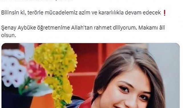 İçişleri Bakanı Ali Yerlikaya, 9 Haziran 2017'de teröristlerin saldırısı sonucu Batman'da şehit olan öğretmen Şenay Aybüke Yalçın'ı vefatının 6'ncı yılında sosyal medya hesabından yaptığı paylaşımla andı.Bakan Yerlikaya paylaşımında, "'Mağusa Limanı limandır liman, aman aman. Beni öldürende yoktur din iman.' Gazimağusa'nın adının geçtiği bu türküyü öyle yanık, öyle içten okuyordu Aybüke Yalçın kızımız. 6 yıl önce, 9 Haziran günü Batman Kozluk'ta o çok sevdiği öğrencilerine karnelerini dağıttıktan sonra hain teröristlerce şehit edildi. Henüz 22'sindeydi. Aziz hatırası unutulmayacak. Bilinsin ki, terörle mücadelemiz azim ve kararlılıkla devam edecek. Şenay Aybüke öğretmenime Allah'tan rahmet diliyorum. Makamı ali olsun" ifadelerine yer verdi.
