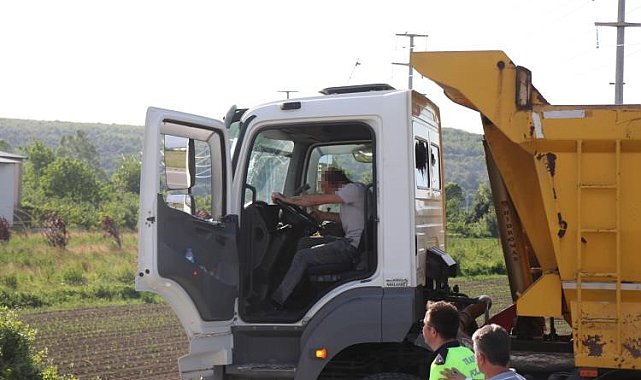 Sakarya'nın Ferizli ilçesinde otomobil ile hafriyat kamyonunun çarpışması neticesinde iki kadının hayatını kaybettiği feci kaza, güvenlik kamerasına yansıdı.Ferizli Organize Sanayi Bölgesi'nde bulunan kavşakta dün meydana gelen kazada, sürücü Canan Emlikli (35) idaresindeki 54 ADY 784 plakalı SEAT marka otomobil, Y.K. idaresindeki 54 D 8763 plakalı Mercedes marka hafriyat kamyonu ile çarpıştı. Kamyon ile birlikte sürüklenen otomobil adeta kağıt gibi ezilirken, otomobil sürücüsü ve yolcu olarak bulunan Mükerrem Derinlik (26) olay yerinde hayatını kaybetti. Durumun haber verilmesi üzerine bölgeye sağlık ve polis ekipleri sevk edildi. Olay yerindeki yapılan incelemelerin ardından kamyon sürücüsü gözaltına alınırken, hayatını kaybedenlerin yakını elindeki çekiçle kamyonun camlarını ve bir bölümünü parçaladı.Kaza anı kameradaÖte yandan, iki kadının hayatını kaybettiği kazanın güvenlik kamera görüntüsü ortaya çıktı. Görüntülerde, hafriyat kamyonunun kavşak içine girmesi ve otomobilin kamyona çarptığı anlar yer alıyor.
