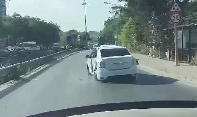 Kağıthane'de kaza yapan ağır hasarlı bir araçla yanlayarak trafikte ilerleyen sürücü izleyenleri hayrete düşürdü. Aracın düzgün bir şekilde şeritte ilerleyemediğini gören sürücüler ise güvenliklerini sağlamak için uzaklaşmayı tercih etti. Trafikte yaşanan o ilginç anlar bir sürücünün cep telefonu kamerasına yansıdı.Geçtiğimiz günlerde Kağıthane Güzeldere Caddesi'nde yaşanan olayda bir sürücü, ağır hasarlı kazalı aracıyla trafikte seyir halinde ilerlerken görüldü. Aracın yan bir şekilde ilerlemesi ise caddede bulunan trafiği tehlikeye düşürdü. Ayrıca aracın seyir halindeyken plakasız olduğu da dikkatlerden kaçmazken, her kasisten geçişte bagajının açılması da ortaya ilginç görüntüler çıkardı. Diğer sürücüler kendi canlarını tehlikeye atmamak için hasarlı araçtan uzaklaşmaya çalışsalar da caddenin daralan yollarında birkaç kez ciddi şekilde kaza tehlikesi atlattıldı. Görenlerin bu kadarı da 'pes' dediği olayı bir başka sürücü cep telefonu kamerasıyla saniye saniye kaydetti.