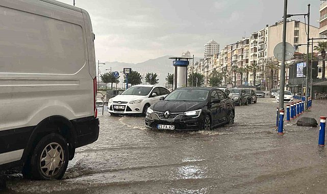 İzmir'de aniden bastıran sağanak yağış, cadde ve sokakları göle çevirdi.İzmir'de sağanak yağmur öğleden sonra merkez ilçelerde etkili oldu. Aniden bastıran sağanak yağış, sürücü ve vatandaşlara zor anlar yaşattı. Yağmura hazırlıksız yakalanan vatandaşlar saçakların altına gizlendi.Öte yandan Konak ilçesindeki Çankaya ve Alsancak bölgesinde cadde ve sokaklar göle döndü. İzmir'in kalbi konumundaki Kordon'da yoğun bir şekilde yağmur suları birikti.