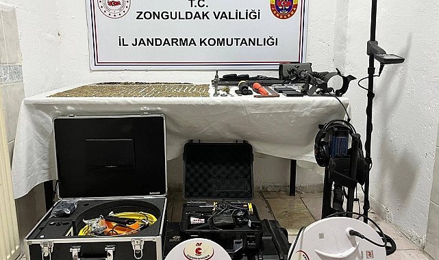 Zonguldak İl Jandarma Komutanlığı ekipleri, Çaycuma ilçesinde gerçekleştirdikleri operasyonla büyük bir tarihi eser kaçakçılığını ortaya çıkardı. Operasyonda yüzlerce sikke, heykel, biblo gibi tarihi eser niteliğindeki eşyalar ele geçirildi.Jandarma ekiplerinin yaptığı operasyonda, adli makamlardan alınan arama kararı çerçevesinde A.K. ve E.K. isimli iki şüphelinin iş yeri, ikametgâh ve araçlarında arama yapıldı. Arama sonucunda bin 271 adet altın olduğu değerlendirilen sikke, 6 adet gümüş olduğu değerlendirilen sikke, 1 adet gümüş renkli heykel, 1 adet gümüş olduğu değerlendirilen kolye ucu, 1 adet gümüş olduğu değerlendirilen insan başlı aslan biblosu, 2 parça halinde değerli maden olabileceği değerlendirilen taş parçaları, 1 adet altın olduğu değerlendirilen taşlı yüzük, 12 adet 9X19 mm çapında tabanca fişeği, yılan kamera ve aparatları olduğu değerlendirilen cihaz, görüntü aktarma ekranı, 5 adet define arama dedektörü ve aparatları, 3 adet el dedektörü ve aparatları, 2 adet hassas terazi, 2 adet harici hard disk, 2 adet cep telefonu, 1 adet tablet bilgisayar ele geçirildi.Cumhuriyet Başsavcılığının talimatları doğrultusunda, A.K. isimli şüpheli ifadesinin alınmasının ardından serbest bırakıldı. E.K. isimli şüpheli ise adli makamlara sevk edildi ve çıkarıldığı mahkemece tutuklanarak Kapalı Ceza İnfaz Kurumuna teslim edildi.