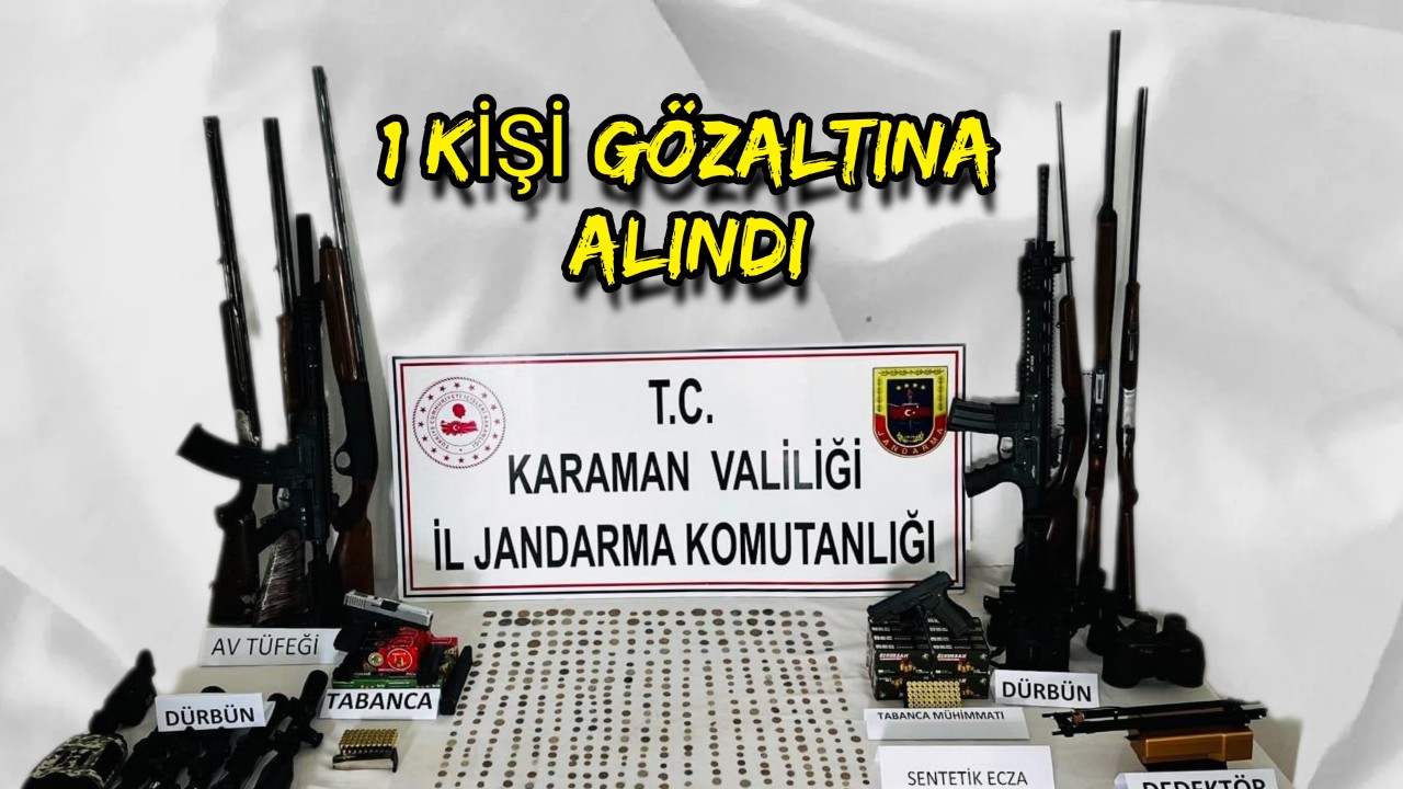 karaman (İHA) - Karaman’ın Ayrancı ilçesinde jandarmanın düzenlediği operasyonda çok sayıda tarihi eser ile ruhsatsız silahlar ele geçirilirken, 1 kişi gözaltına alındı.