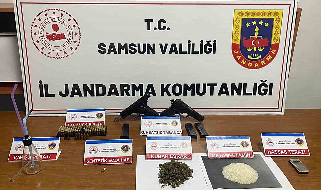 Samsun'da jandarma ekipleri tarafından bir eve yapılan operasyonda uyuşturucu ve silah ele geçirildi.Edinilen bilgiye göre, Samsun'un Atakum ilçesinde jandarma ekipleri tarafından kaçakçılık ile uyuşturucu ve uyarıcı madde ticaretinin önlenmesine yönelik yapılan araştırma sonucu A.C. (38) isimli şahsın uyuşturucu madde bulundurduğu bilgisine ulaşıldı. Atakum İlçe Jandarma Komutanlığı ekiplerince şahsın evine operasyon düzenlendi. Yapılan aramalarda 109 gram metamfetamin, 29 gram kubar esrar, 2 adet uyuşturucu kullanma aparatı, 1 adet sentetik hap, 1 adet hassas terazi, 2 adet ruhsatsız tabanca ve 127 adet tabanca fişeği ele geçirildi. Olayla ilgili firarda olan A.C.'nin yakalanması için çalışma başlatıldı.