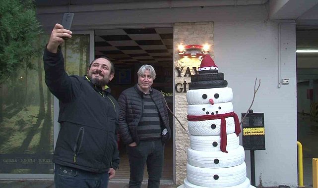 İzmir'de otopark çalışanları yıllardır çektiği kar hasretini gidermek için çözümü 'lastik adamda' buldu. Geri dönüşüm malzemelerinden yaptıkları 'lastik adam' bölge esnafının maskotu oldu.Yurt genelinden gelen kış manzarası görüntüleriyle kara hasret kalan İzmirliler, kente kar yağmayınca çözümü kendileri üretti. İzmir'in Konak ilçesinde bulunan bir otoparkta çalışan Ali Can Demir, iş arkadaşlarıyla birlikte; tır, kamyon, motor lastiği ve eskimiş plaj havlusu gibi atık malzemeleri kullanarak 'lastik adam' yaptı. Kar renginde beyaz görüntüsü ve başındaki şapkasıyla kardan adamı andıran 'lastik adam' görenlerin de ilgisini çekiyor. Kara hasret kalan vatandaşlar 'lastik adam' ile fotoğraf çekilip hasret gideriyor.İzmirliler olarak kara hasret olduklarını belirten Ali Can Demir, "Biraz olsun hasret gidermek istedik. Biz de çözümü kendimiz ürettik. Tamamen geri dönüşümden malzemelerle kardan adam yaptık. Kardan adamı yaparken en alttan üste doğru kamyon, tır ve motor lastiği kullandık. Düğmelerini ise damacana kapağından, atkısını eskimiş plaj havlusundan yaptık. Ek olarak sadece noel baba şapkası kullandık" dedi."İnsanlar kar yağışını özledi"Çevredeki vatandaşların 'gerçek mi?' şeklinde tepkileriyle karşılaştıklarını aktaran Demir, "Lastikleri temin etmemiz, boyaları yapmamız derken yaklaşık bir hafta içerisinde 'lastikten kardan adamı' tamamladık. En azından hem etrafa beyazlık kattık hem de geri dönüşümü renklendirmiş olduk. Çevreden geçen insanların da dikkatini çekiyor. Gelip fotoğraf çekiliyorlar. Hatta 'gerçek mi?' diye soran bile oldu. İnsanlar kar yağışını özlemiş durumda. Biz de yenilikçi bir şeyler oluşturmak istedik" ifadelerine yer verdi.