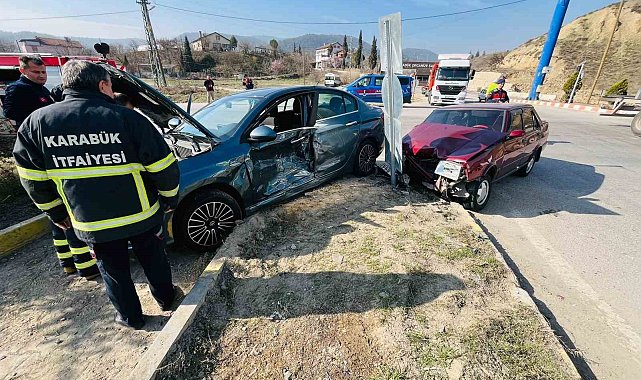 Karabük'te iki otomobilin çarpışması sonucu meydana gelen trafik kazasında 3 kişi yaralandı.Kaza Karabük-Eskipazar kara yolu Organize Sanayi Kavşağında meydana geldi. S.Y. sevk ve idaresindeki 78 BG 894 plakalı otomobil Eskipazar istikametine seyir halindeyken, kavşaktan dönüş yapmakta olan K.K. sevk ve idaresindeki 06 CVH 344 plakalı otomobille çarpıştı. Kazada K.K., M.C. ve S.Y. yaralandı. İhbar üzerine olay yerine polis, jandarma, itfaiye ve 112 Acil Servis ekipleri sevk edildi. Sağlık ekiplerinin ilk müdahalesinin ardından yaralılar Karabük Eğitim ve Araştırma Hastanesi'ne kaldırıldı.Tedavi altına alınan yaralıların sağlık durumlarının iyi olduğu öğrenildi.