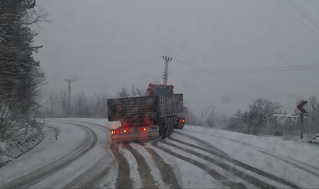 Karabük'ün yüksek kesimlerinde etkili olan kar yağışı nedeniyle sürücüler zor anlar yaşarken, karayolları ekipleri küreme ve tuzlama çalışmalarına başladı.Meteoroloji Genel Müdürlüğünün uyarılarının ardından Karabük'te kar yağışı başladı. Karabük-Bartın karayolu 1030 rakımlı Ahmetusta mevkiinde etkili olan kar yağışı ile birlikte doğa beyaz örtüyle kaplandı. Kar yağışına hazırlıksız yakalanan bazı sürücüler zor anlar yaşarken, karayolları ekipleri bölgede kar küreme ve tuzlama çalışmalarına başladı.Bartın istikametine seyir halinde olan bir tır dorsesinin kayganlaşan yolda zikzak çizdiği ve bariyere çarptığı anlar cep telefonu kamerasıyla kaydedildi. Karabük istikametine seyir halinde olan arazi aracında da sürücüsünün kontrolünden çıkarak yol kenarındaki kanala düşmesi sonucu maddi hasar oluştu.Öte yandan Safranbolu merkezde de kar yağışı etkili olmaya başladı.