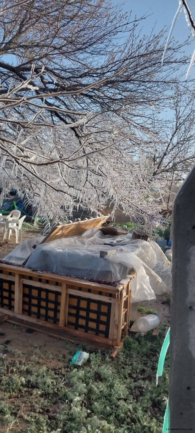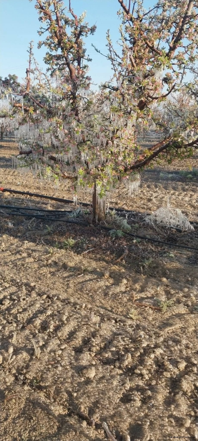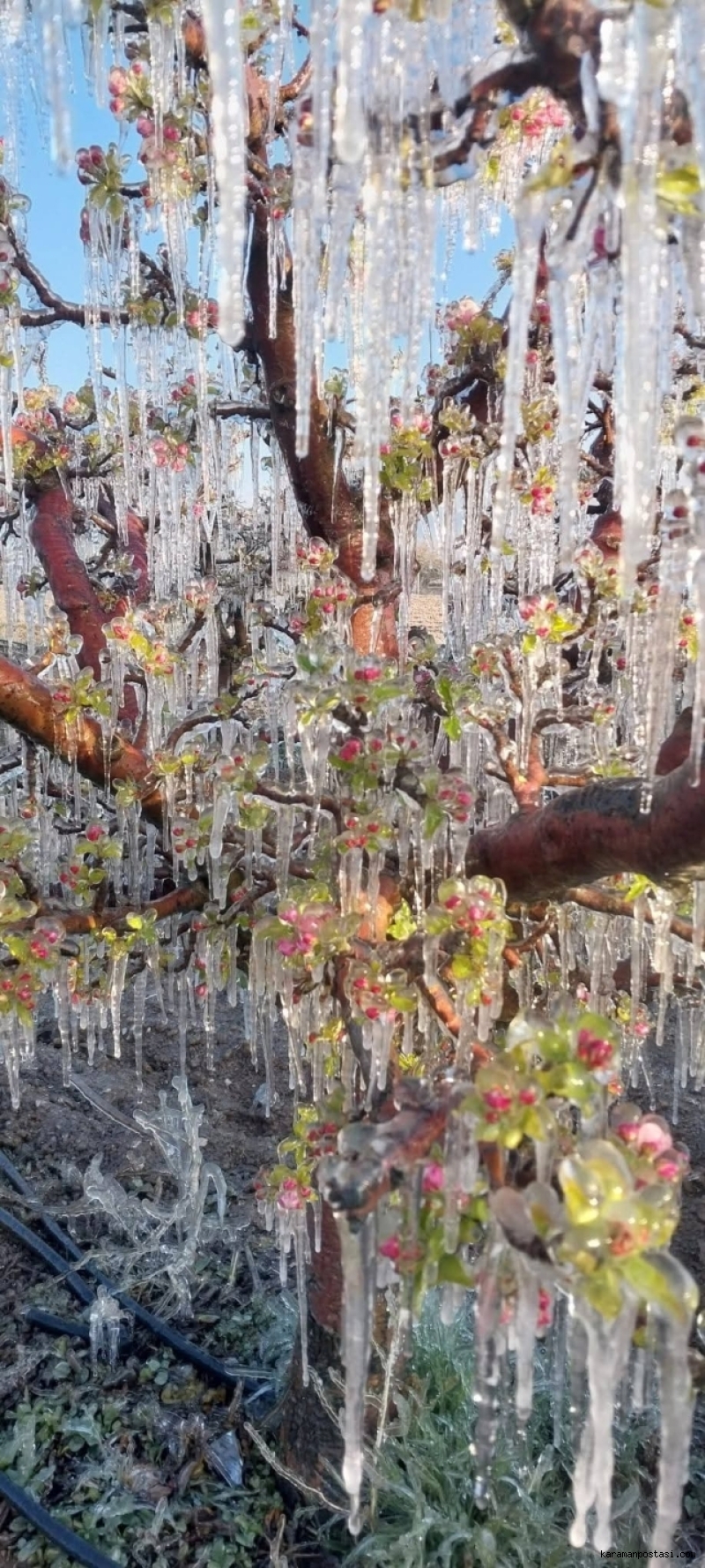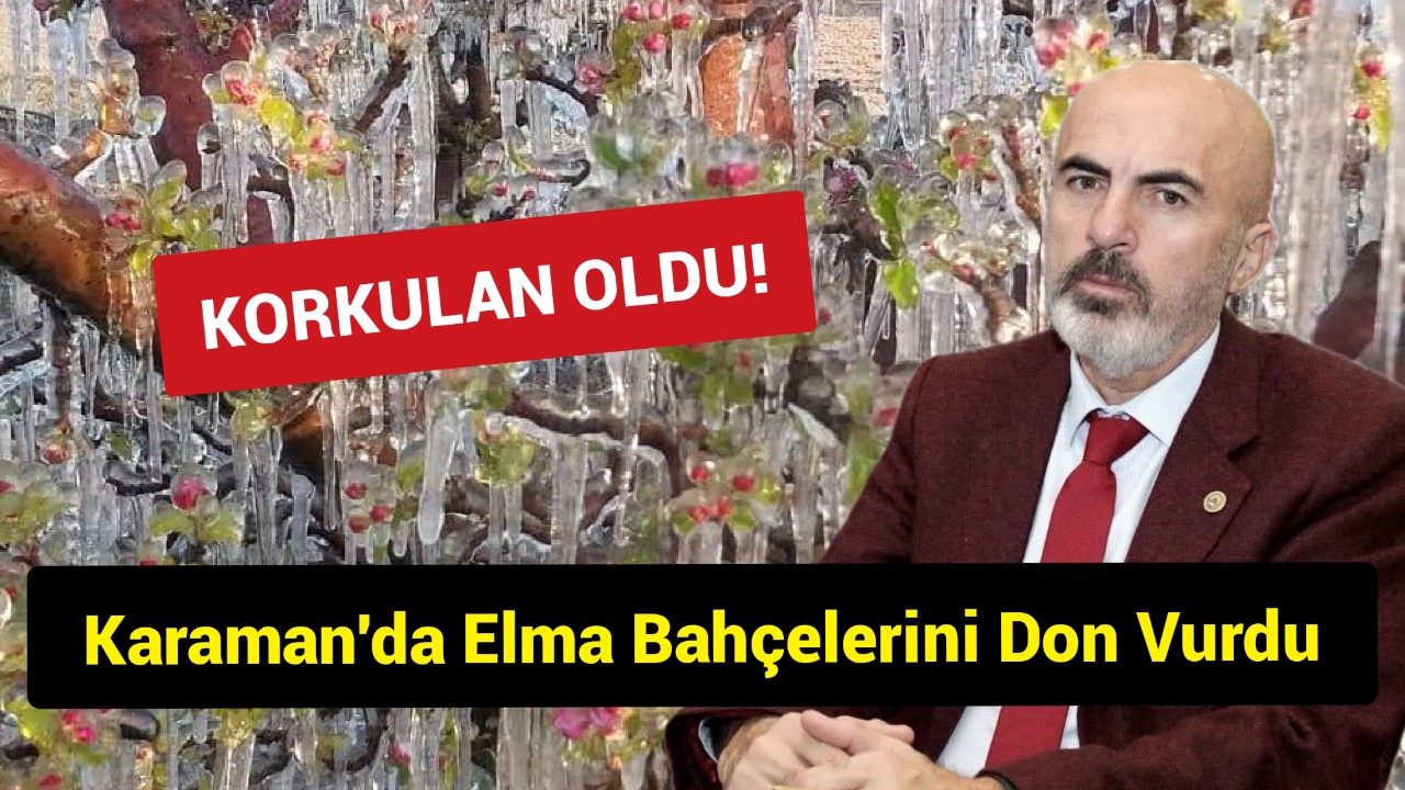 Karaman’da dün ve bugün sabaha karşı etkili olan ve -3 ile -5 dereceye kadar düşen hava sıcaklıkları, elma üreticilerini vurdu. Yaklaşık 4 saat süren don olayı nedeniyle elma bahçelerinin yüzde 90’ının etkilendiği bildirildi. Karaman Ziraat Odası Başkanı Mehmet Bayram, sosyal medya hesabından yaptığı açıklamada yaşanan olayı "bir afet" olarak nitelendirdi.