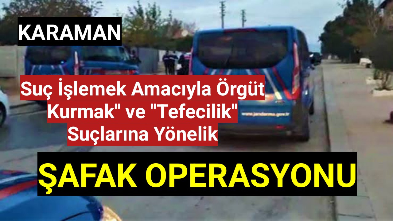 karaman İl Jandarma Komutanlığı ekipleri tarafından yürütülen geniş çaplı soruşturmada, “Suç İşlemek Amacıyla Örgüt Kurmak” ve “Tefecilik” suçlarına yönelik