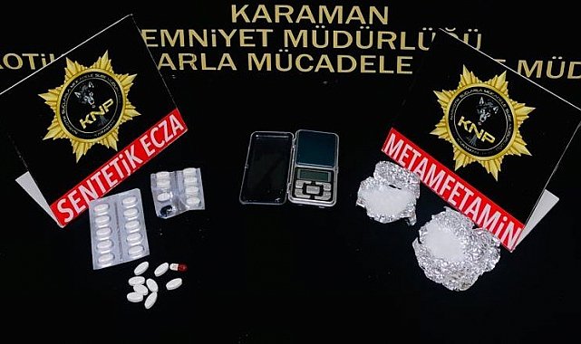 Karaman'da, satmak için Antalya'dan getirdiği uyuşturucu ile yakalanan 1 kişi tutuklandı.Edinilen bilgiye göre, İl Emniyet Müdürlüğü Narkotik Suçlarla Mücadele Şube Müdürlüğü ekipleri H.D. isimli şahsın Antalya'dan Karaman'a uyuşturucu getirip satacağı yönünde bilgiye ulaşması üzerine çalışma başlattı. Şahsı takibe alan ekipler, H.D'yi Karaman'a gelir gelmez yakaladı. Şahsın üzerinde yapılan aramada, 15.65 gram metamfetamin, 26 adet sentetik hap ile 1 adet hassas terazi ele geçirildi. Emniyetteki işlemlerin ardından adliyeye sevk edilen zanlı çıkarıldığı mahkemece tutuklanarak cezaevine gönderildi.