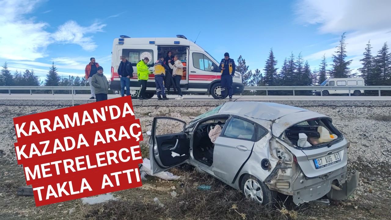 Karaman'da meydana gelen trafik kazasında araç metrelerce takla attı.