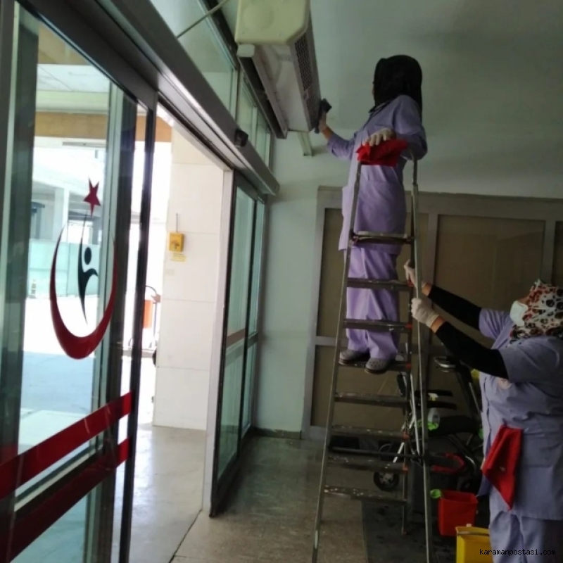 Karaman Eğitim ve Araştırma Hastanesinde Genel Temizlik Çalışmaları Sürüyor