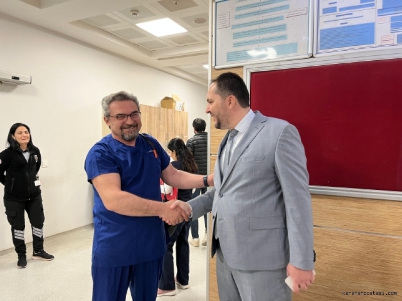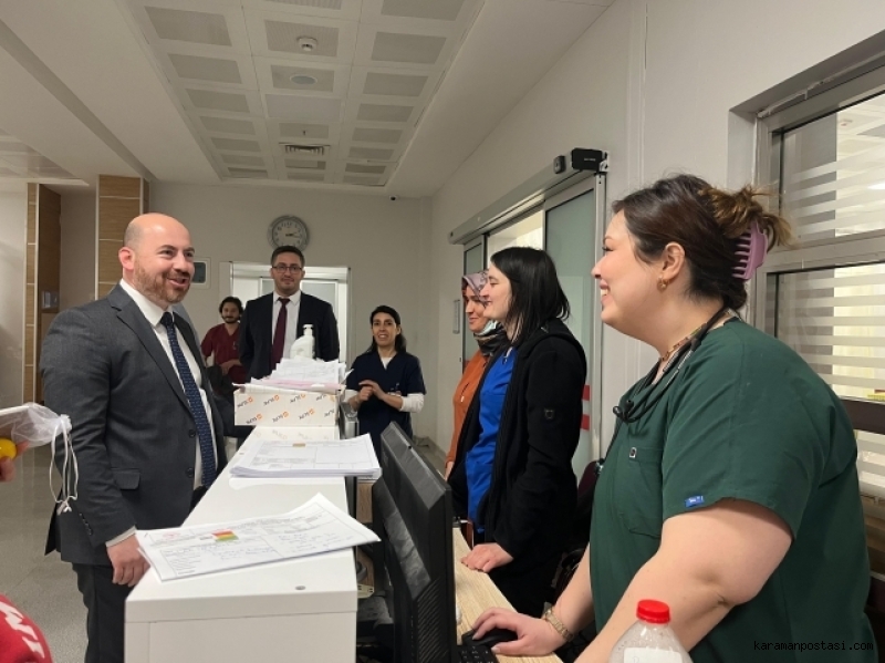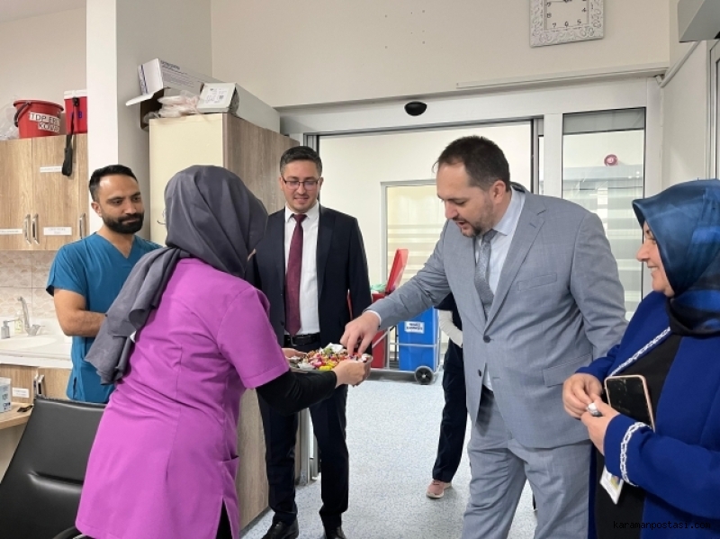 Karaman İl Sağlık Müdürü Uzm. Dr. Mehmet Serkan Yurdakul, Ramazan Bayramı dolayısıyla kentte görev yapan sağlık çalışanlarını ziyaret ederek bayramlarını kutladı.