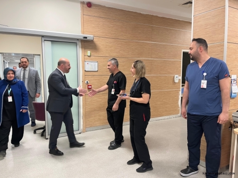Bayramın ilk gününde karaman Eğitim ve Araştırma Hastanesi’ne giden Yurdakul, burada nöbetçi doktor, hemşire ve diğer sağlık personeliyle bir araya geldi. hastane içerisindeki servisleri dolaşan Yurdakul, çalışanlara görevlerinde kolaylıklar diledi.