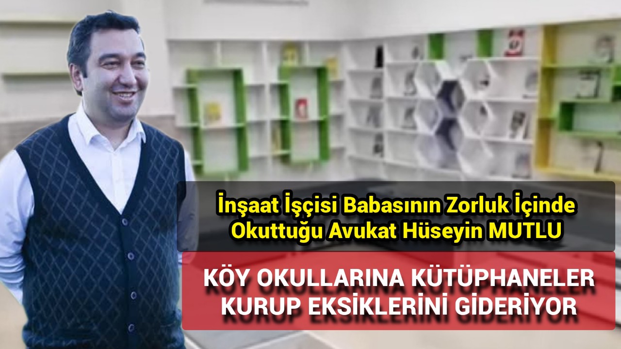 Karaman’da inşaat ustası olan babasının iş kazası geçirmesi sonucu zorluk içinde eğitim hayatını sürdüren avukat Hüseyin Mutlu, köy okullarına kütüphaneler kurup, eksikliklerini gidererek geleceğin teminatı gençlerin eğitimine katkı sağlıyor. Karaman’da 2012 yılından bu yana avukatlık yapan Hüseyin Mutlu, elde ettiği gelirin büyük bölümüyle de kırsal kesimdeki köy okullarına kütüphaneler yaptırırken, yüzlerce çocuğa da kırtasiye yardımında bulunuyor.Mutlu, avukat olmasında lise yıllarında etrafında ve ailesinde yaşadığı bazı olayların etkili olduğunu söyledi.İnşaat ustası olan babasının iş kazası geçirmesinden sonra uzunca süre ailecek mağduriyet yaşadıklarını ifade eden Mutlu, “Bu mağduriyetimizde yanımızda duracak kişi bulamadık. Babamı kimse savunmadı. Bu da benim avukat olma kararımda önemli bir etkendi.