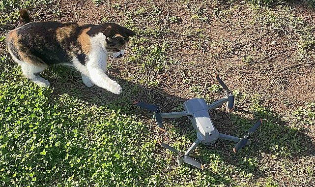 Mersin'de sahil şeridinde bir kedinin uçuşa hazırlanan dron ile oyunu gülümsetti.Mersin'de çekim için hazırlanan dronu fark eden kedi bir süre çevresinde dolaşarak yanına geldi. Dron çevresinde önce keşif yapan kedi, daha sonra patileriyle pervanelerini tokatlamaya başladı. Defalarca aynı hareketleri yapan kedinin halleri görenleri gülümsetti.Dronun havalanmasıyla, iki ayağı üzerinde havadaki drona ulaşmaya çalışan kedinin hareketleri dikkat çekti.O anlar hem kamera ile hem de dron ile görüntülendi.