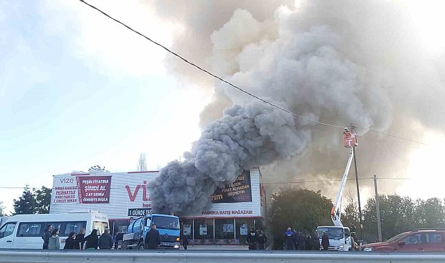 Kırklareli'nde 'Vize Home Furniture' isimli mobilya satış mağazasında çıkan yangına sevk edilen çok sayıda itfaiye ekibinin söndürme çalışmaları sürüyor.Yangın, Kırklareli-İstanbul yolu birinci kilometresinde meydana geldi. Edinilen bilgiye göre, henüz belirlenemeyen bir nedenle mobilya satış mağazasında yangın çıktı. Yangının kısa sürede büyümesi nedeniyle olay yerine itfaiye, İl Özel İdare, BOTAŞ ve Orman İşletme Müdürlüğü ekipleri sevk edildi. Çok sayıda ekip yangını söndürmek için yoğun çaba gösteriyor.Polis, yangının çıkış sebebiyle ilgili inceleme başlattı.