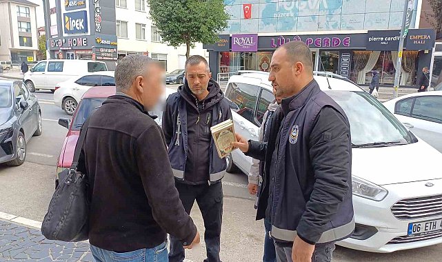 Düzce(İHA) – Düzce'de uygulama yapan zabıta ekipleri dini kitaplar satan şahsı durdurdu. Şahsın, "Satmıyorum, okuyorum" demesi üzerine zabıta, "Esmaül Hüsna'dan 10 tane say, seni bırakacağım" ifadelerini kullandı. Esmaül Hüsna yerine 4 büyük meleği yarım sayan seyyar satıcı gözaltına alındı.Düzce'de uygulama yapan zabıta ekipleri, seyyar olarak dini kitaplar satan şahsı durdurdu. Daha önce de işlem yapılan İ.Ç.'nin kitapları satmaya devam ettiğini gören Düzce Belediyesi Zabıta Ekipleri kitaplara el koydu. Bu sırada seyyar satıcı kitapları vermemek için ısrar etti."Satmıyorum, okuyorum"Zabıta ekipleri ile tartışan satıcı kitapları satmadığını, kendisinin okuduğunu söyledi. Zabıta ekipleri satıcıya "Madem satmıyorsun ve Esmaül Hüsna kitapları satıyorsun Allah'ın 99 isminden 10 tanesini say serbest bırakalım" dedi. Seyyar satıcı ise, 'Allah' ile başladığı saymaya Cebrail, Mikail diyerek devam etti. Bunun üzerine zabıta ekipleri seyyar satıcıyı, 4 büyük meleği saydığını söyleyerek uyardı. Seyyar satıcı kendisini görüntüleyen gazetecilerle tartıştı. Olay yerine çağrılan polis ekipleri ile merkeze götürülmek istenen seyyar satıcı İ.Ç., polis aracına binerken gazetecilere el hareketi çekti.Seyyar satıcı üst aramasının ardından polis merkezine götürülmek üzere polis aracına bindirildi.