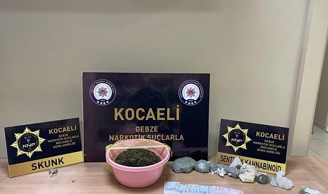 Kocaeli'nin Derince ve Gebze ilçelilerinde polis ekiplerince düzenlenen uyuşturucu operasyonunda gözaltına alınan 9 şahıstan 4'ü tutuklandı.Edinilen bilgiye göre, İl Emniyet Müdürlüğü Narkotik Suçlarla Mücadele Şube Müdürlüğü ekipleri uyuşturucu madde kullanımı ve ticaretinin engellenmesine yönelik çalışma gerçekleştirdi. Derince ve Gebze ilçelerinde düzenlenen operasyonda 9 şahıs gözaltına alındı. Adreslerde ve şahısların üzerinde yapılan aramda; 961 gram sentetik kannabinoid, 5 gram skunk, 1 hassas terazi ve uyuşturucu madde ticaretinden elde edildiği tahmin edilen bin 800 TL ele geçirildi.Emniyetteki işlemlerinin ardından 2 şahıs serbest bırakıldı. Adliyeye sevk edilen M.B, S.A.M. ve B.K.K. adli kontrol şartıyla serbest bırakılırken, H.İ.K., O.K., K.K.Y. ve A.M. ise çıkarıldıkları mahkemece tutuklandı.