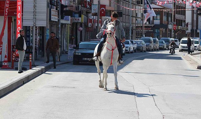 Konya'nın Karapınar ilçesinde hafta sonu trafiğinin az olmasını fırsat bilen bir kişi at ile ilçe merkezinde yaptığı gezinti ile ilgi odağı oldu.At binmeye merak Yunus Karakaya, kendisine ait atıyla şehir merkezinde dolaştı. Araç trafiğinin olmaması ve havanın güneşli olmasını fırsat bilen Yunus Karakaya, dört nala ile Konya ve İnönü caddelerinde tur attı. Araç trafiğine alışkın olan vatandaşlar bir anda atın caddede gezdiğini görünce hem şaşkınlıkla izledi hem de cep telefonları ile görüntü çekti. Çarşıda yaklaşık 15 dakika boyunca tur yapan Yunus Karakaya şaşkın bakışlar arasında çiftliğine geri döndü.