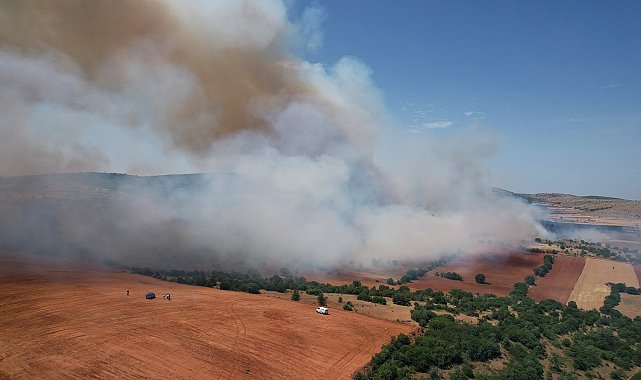 Manisa'nın Kula ilçesinde buğday tarlasında başlayan ve ormana sıçrayan yangın, yaklaşık 7 saatlik çalışmaların ardından kontrol altına alındı. Yangında 30 hektar ormanlık, 25 hektar ziraat alanı küle döndü.Günlerdir biçerdöver kaynaklı yangınlarla mücadele eden Manisa'nın Kula ilçesinde bugün saat 11.15 sıralarında başlayan ve ilk müdahalenin 11.25'te yapıldığı buğday tarlasında başlayan yangın ormanlık alana sıçradı. Kuvvetli rüzgarın etkili olduğu bölgede yangının büyümesi sebebiyle hem havadan hem de karadan büyük bir mücadele verildi. Orman Genel Müdürlüğüne bağlı 2 helikopter, 2 uçak, 14 arazöz, 4 su ikmal aracı, 3 iş makinesi, Manisa Büyükşehir Belediyesi İtfaiyesinden 10 itfaiye ekibi, 20 traktör, 3 su tankeri ve 2 kepçe ile müdahale edilen yangın, yaklaşık 7 saatlik çalışmanın ardından kontrol altına alındı. Orman ve itfaiye ekiplerinin yanı sıra bölge halkı ve jandarma ekiplerin de destek verdiği yangın sebebiyle yaklaşık 30 hektar orman, 25 hektar ziraat alanı küle döndü. Kontrol altına alınan yangında soğutma çalışmaları sürüyor.Öte yandan, Kula Kaymakamı Ömer Ahmet Özdemir, Manisa Büyükşehir Belediyesi İtfaiye Daire Başkanı Gürhan İnal, Kula Belediye Meclis Üyesi Mahmut Çalık, Salihli Orman İşletme Müdürü Mehmet Durak, Demirci Orman İşletme Müdürü Tayfun Doğan, İlçe Jandarma Komutanı Üsteğmen Bayram Yüksel, Kula Orman İşletme Şefi Veli Kılıç ile Divlit Orman İşletme Şefi Cihat Yıldırım, yangın bölgesindeki çalışmalara katılıp yangının durumunu dron ile havadan takip etti.