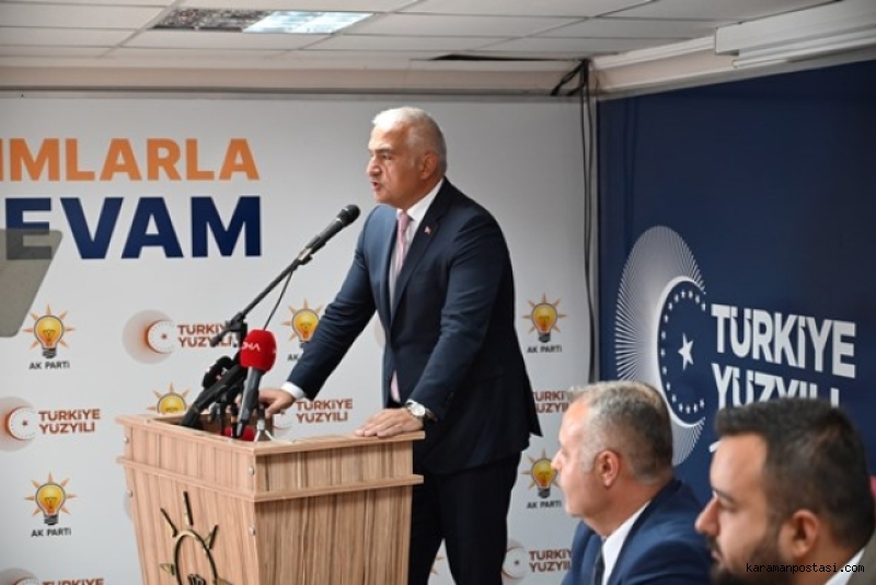 Aynı zamanda bu 60 milyon ziyaretçinin yanında da bu yıl turizmden beklentimiz 60 milyar dolardır. Bu hedefleri aşacağımız günlerin de çok uzakta olmadığını biliyoruz. İnşallah yakın dönemlerde dünya turizm pastasından çok daha fazla pay alacağımızı da sizlerle paylaşmak isterim. Değerli Karamanlılar, bu kadar önemli icraatın arkasındaki dik duruş olmasa bu noktaya gelmemize imkan yoktu. Sayın Cumhurbaşkanımız, kültür ve turizm alanında Türkiye’mizi ileriye taşıyacak her girişimimizde bize sonuna kadar destek oldu. Onun bu kararlı iradesi sayesinde bizler bugün dünya turizminde ön sıralarda yer alan bir ülke konumuna geldik.