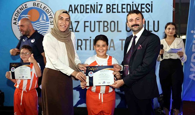 Mersin'de, Akdeniz Belediyesi Kültür Sosyal İşler Müdürlüğüne bağlı spor kulübünün açtığı ücretsiz yaz okulunda, alanında uzman antrenörler gözetiminde futbol, basketbol ve tenis dallarında kurs alan 750 çocuk, ailelerinin de katıldığı törenle sertifikalarını aldı.Seyfi Ali Türkoğlu - Şafak Erdur Spor Tesisinde organize edilen törene, Akdeniz Belediye Başkanı Hoşyar Sarıyıldız, başkan yardımcıları ve meclis üyeleri, spor kulübü yönetimi ile kursiyer çocukların aileleri katıldı. Büyük coşku ve heyecan içinde geçen buluşmada kursiyer minikler dostluk maçı yaptı, 1-1 sona eren maçta her 2 golü de yaz okulunun kız öğrencileri attı."Kızlarımız imkan bulduğunda erkek egemen anlayışa gol atabiliyor"Kursiyer çocukların sertifika heyecanını paylaşmaktan büyük mutluluk duyduklarını dile getiren Akdeniz Belediye Başkanı Hoşyar Sarıyıldız, "Çocuklarımızın, sertifikalarını aldıkları bu güzel anlarda yanlarında bulunmak, kıymetli ailelerimizin mutluluğunu paylaşmak istedik. Yapılan dostluk maçında, iki takımdan da golleri kız çocuklarımız attı. Aslında kız çocuklarımız şu mesajı verdiler bize; imkân bulduklarında, en güzel şutu, erkek egemen anlayışa karşı atabiliyor ve bunu da golle taçlandırabiliyorlar" dedi."Çocuklarımız için her türlü imkânı sunmaya devam edeceğiz"Sarıyıldız; futbol dalında 450, basketbol ve teniste de 300 olmak üzere toplamda 750 çocuğa sertifika vereceklerini kaydederek sözlerini şöyle sürdürdü; "Bu kurslarımızı çocuklarımızın gelip sadece futbol, tenis veya basketbol oynadıkları kurslar olarak değerlendirmeyelim. Burada aslında sosyal, kültürel ve sportif etkinliklerle geleceğimizi teminat altına alıyoruz. Çocuklarımız için her türlü imkânı sunmaya devam edeceğiz. Halkımız arasında da asla ayırım yapmadan, hiçbir mahallemizi ihmal etmeden her bölgemize spor tesisleri kazandırmak, mevcut tesislerimizi yenilemek için de belediyemizin gücü ve imkânları ölçüsünde gerekli girişimlerde bulunacağız."Akdeniz Belediye Spor Kulübü Yaz Okulu Sertifika Töreninde, kursiyer çocuklar ve ailelerinin sevgisiyle karşılaşan Sarıyıldız, sertifikaların tesliminden sonra tesisten ayrılmayarak, kursiyer çocuklar ve aileleriyle sohbet etti.