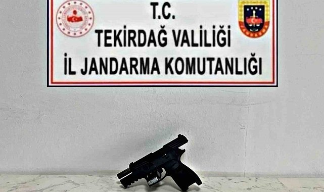 Tekirdağ'da jandarma ekiplerince bir kişinin üst aramasında kuru sıkıdan çevirme tabanca ve fişekler ele geçirildi.Tekirdağ İl Jandarma Komutanlığı ekiplerince Çerkezköy Namık Kemal Mahallesinde icra edilen devriye esnasında şüpheli bir şahsa rastladı. Ekipler şüpheli Ö.Ş.'nin üst aramasında 1 adet kuru sıkıdan çevirme tabanca, tabancaya ait 1 adet şarjör ve 3 adet fişek ele geçirildi.Şahıs hakkında işlem yapıldı.