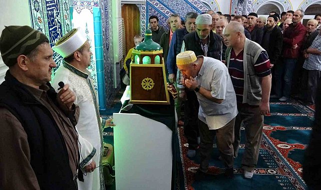 Kütahya'da Sakal-ı Şerif'i görmek isteyen vatandaşlar, Bahçelievler Mahallesi Ensar Camii'ne akın etti.40 ipek bohçaya sarılı Sakal-ı Şerif Ensar Cami'nde teravih namazı sonrası din görevlileri ve cemaatin tekbirleriyle ziyarete açıldı. Sakal-ı Şerif ilk olarak erkeklere, daha sonra bayanlara gösterildi. Cam şişe içinde saklanan Sakal-ı Şerif'i ziyareti sırasında camiyi dolduran vatandaşlar, duygusal anlar yaşadı.Vatandaşlar, Hazreti Muhammed'in (SAV) mübarek Sakal-ı Şerif'i dünya gözüyle görmenin mutluluğunu yaşadıklarını dile getirdiler.Sakal-ı Şerif'in arife gününe kadar şehirdeki çeşitli camilerde halkın ziyaretine açılacağı belirtildi.